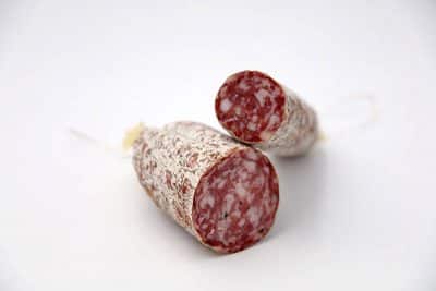 Tras unas semanas de maduración, el salami sbriciolona está listo para ser envasado y consumido.