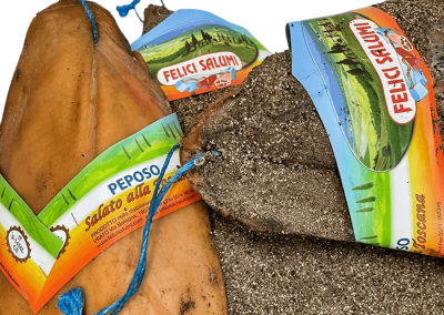 Peposo es el jamón deshuesado a la pimienta: combina el sabor de la pata con el de la pimienta, típico de los embutidos toscanos.